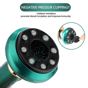 Aparatul de masaj cu terapie prin ventuza/vaccum integreaza cupping, scraping si lumina rosie toate impreuna. Este foarte simplu si usor de utilizat singur, fara ajutorul nimanui. Mic si portabil, modulul pe 12 nivele va permite sa va bucurati de un masaj profesional oricand si oriunde, indiferent daca va aflati la serviciu, fitness sau va odihniti, potrivit pentru utilizare pe spate, umeri, picioare etc.