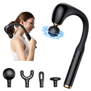 Aparat de Masaj Percutant în Formă de L – 5 Viteze, Capete Interschimbabile, USB-C, 10W