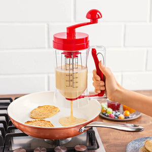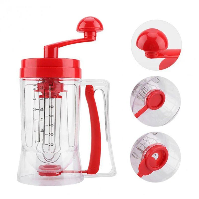 Aparat manual pentru amestecarea aluatului, cu dozator pentru clatite si prajituri