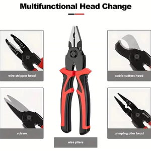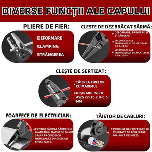 Clește multifuncțional 5 în 1 cu capete interschimbabile, Patent, Taietor Cablu, Dezizolator, Cleste Sertizare, Foarfeca de tabla, cap interschimbabil, maner ergonomic, izolat electric