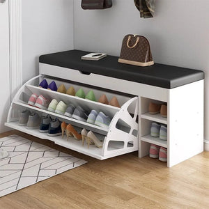 Această bancă multifuncțională cu spațiu de depozitare oferă un loc confortabil pentru a te așeza, facilitând încălțarea sau descălțarea, în timp ce partea inferioară dispune de un compartiment generos pentru depozitare. Designul său este ideal pentru a economisi spațiu și a organiza eficient pantofii și alte accesorii.