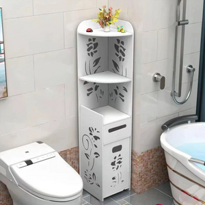 Cu acest dulap vertical de colț pentru baie, vei putea să-ți organizezi eficient produsele de igienă personală, prosoapele sau alte obiecte necesare zilnic. Fiind alb, va aduce un plus de lumină și spațialitate băii tale, iar designul modern se va integra perfect în decorul existent, oferind totodată funcționalitate și un aspect plăcut și ordonat.