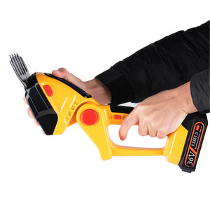 - – Lama cu lungimea de 35 cm cu actiune duala, taiata cu laser cu distanta intre dinti de 19 mm confectionata din otel forjat pentru pastrarea ascutisului si o durata mare de viata;