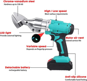 Maner Ergonomic si Baterie Mare: Foarfeca metalica cu alimentare electrica prezinta un design ergonomic al manerului care reduce oboseala în timpul utilizarii prelungite, asigurand o experienta confortabila. Echipate cu o baterie litiu-ion, aceste foarfece ofera putere de lunga durata pentru sesiuni de lucru prelungite.