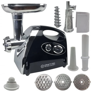 Masina de tocat carne Craft-Tec Neagra 3800W, Accesorii rosii, carnati, chiftele, 3 site, functia revers, motor cupru