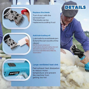 👉 Cu mașina electrică profesională de tuns oi 750W, vei obține performanță constantă, mobilitate maximă și confort în utilizare, chiar și pentru cele mai solicitante sesiuni de tuns.