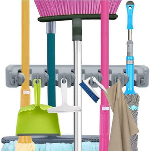 Organizator universal, suport de perete multifunctional pentru mop si matura, cu 5 locuri