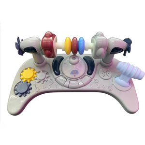 Panou muzical interactiv detașabil, cu jucării colorate și sunete distractive, ce stimulează simțurile și coordonarea mână-ochi