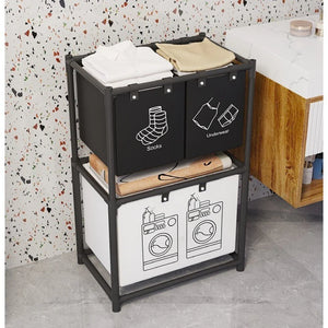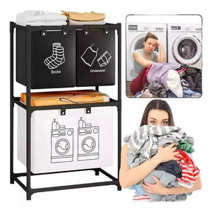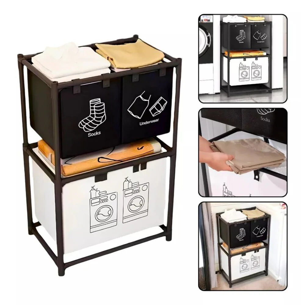 Acest organizator este solutia ideala pentru depozitarea hainelor murdare in baie, dormitor sau spalatorie. Designul compact si materialele rezistente ofera o solutie practica pentru organizarea rufelor si economisirea spatiului.