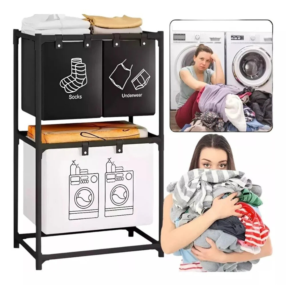 ✔ Sortare eficienta a hainelor – Cosurile permit organizarea rufelor pe categorii.