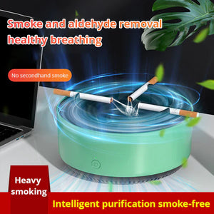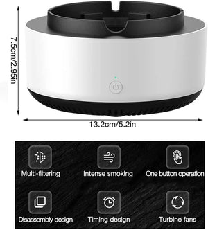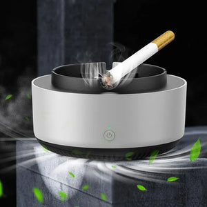 O scrumiera purificatoare de aer care emite in mod natural ioni negativi folosind tehnologia de aspiratie circulara de 360 de grade, filtreaza fumul de tigara si elimina mirosurile neplacute.