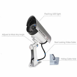Camera de supraveghere falsa Dummy Ir cu aspect profesional, credibil, LED incorporat, ideala pentru intimidarea hotilor. Arata exact ca o camera profesionala. Nu necesita instalare complicata, fixandu-se cu suruburi, fara conectare la priza. Led rosu care se aprinde intermitent si atrage atentia mai ales pe timp de noapte.