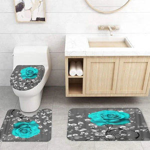 Set baie 4 piese: perdea, covorase si husa de toaleta