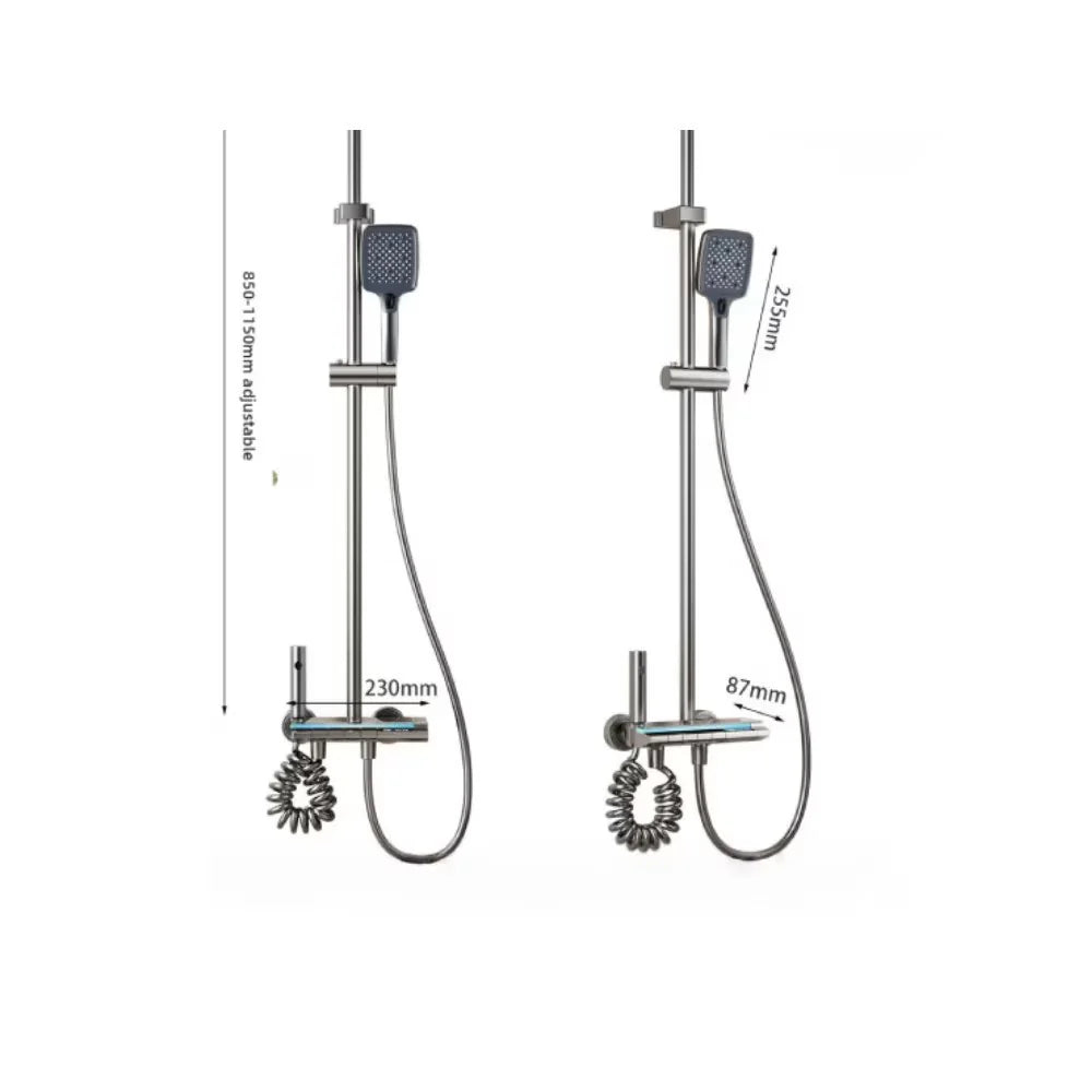 Set coloana dus digital cu termostat, afisaj LED, 4 functii curgere apa, control termostatic, robinet tip cascada, Gri Grafit