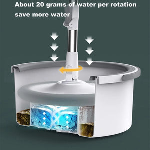 CURATARE ROTATIVA RAPIDA DE 360 DE GRADE - Sunt necesare doar 7 secunde pentru a scufunda manerul de 12 ori pentru a stoarce mopul, astfel încat utilizarea acestuia nu va fi o corvoada. Puteti chiar personaliza umiditatea capului mopului pentru diferite conditii ale podelei.