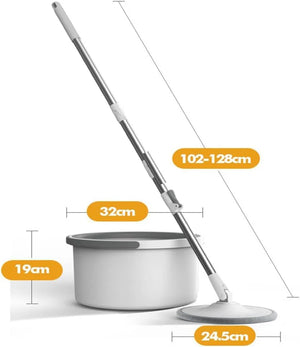 Set mop rotativ cu doua rezerve si auto spalare culoare gri, rotunda, compartimente pentru apa curata si murdara, robinet de scurgere a apei si consum redus