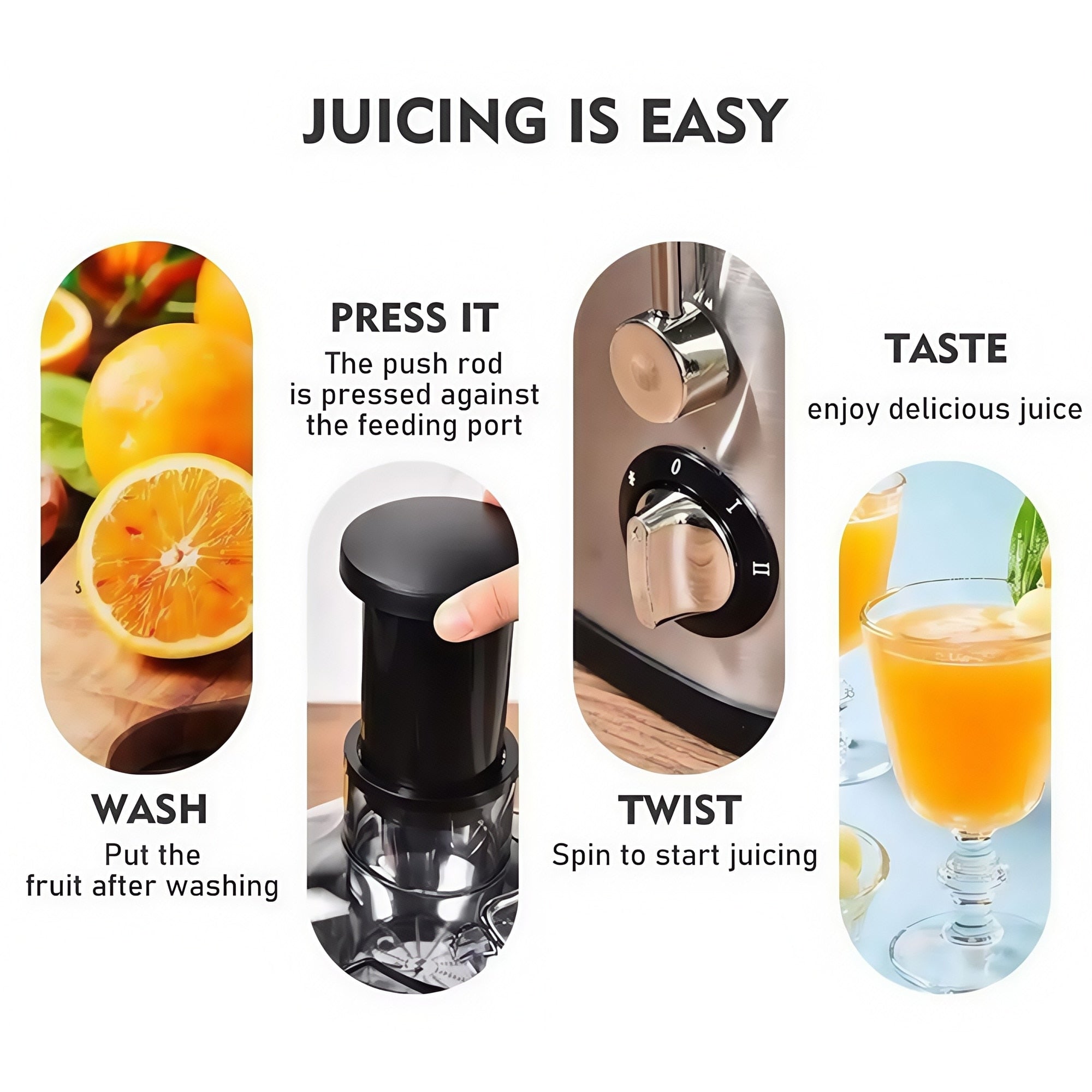 Ideal pentru sucuri din citrice, mere, morcovi, sfeclă și multe altele