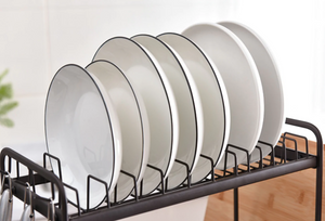 - Design practic: Fiecare dintre cele trei niveluri ale raftului este echipat cu o tavă de scurgere detașabilă, care colectează apa de la vase, menținând astfel blatul curat și uscat. Aceste tăvi sunt ușor de îndepărtat și curățat, oferind un plus de igienă.