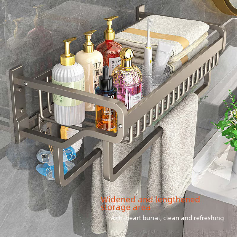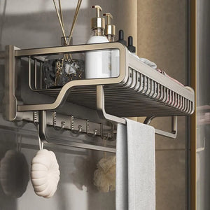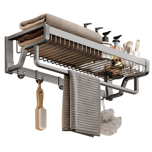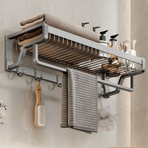Design 2 în 1: raft superior pentru haine, prosoape și produse de baie, suport inferior + cârlige pentru agățat prosoape, bureți etc.
