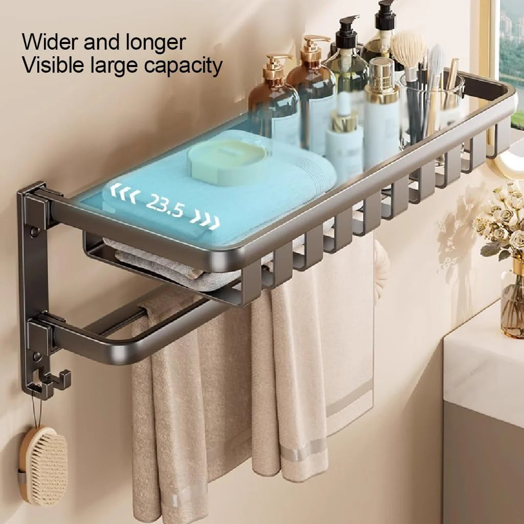 Ideal pentru baie, bucătărie, toaletă sau chiar piscină, acest suport de prosoape aduce un plus de funcționalitate și eleganță spațiului tău. Cu două niveluri pliabile, bară pentru prosop și cârlige pentru accesorii, este soluția perfectă pentru a păstra ordinea și a separa ușor prosoapele uscate de cele umede.