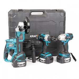 Cu această trusă, aveți la dispoziție 4 unelte de înaltă calitate, alimentate de 2 acumulatori puternici de 128V, care vă vor face munca mai ușoară și mai eficientă.