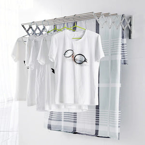 Uscatorul retractabil/extensibil are fixarea pe perete si este format din 5 bare de aluminiu.